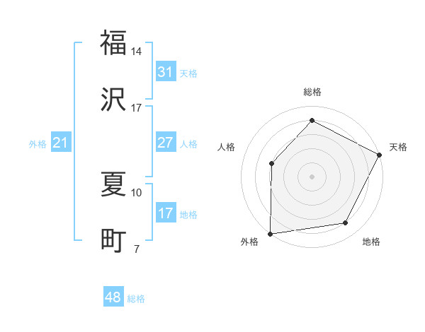福沢 夏町さんの天格は31画の5点!