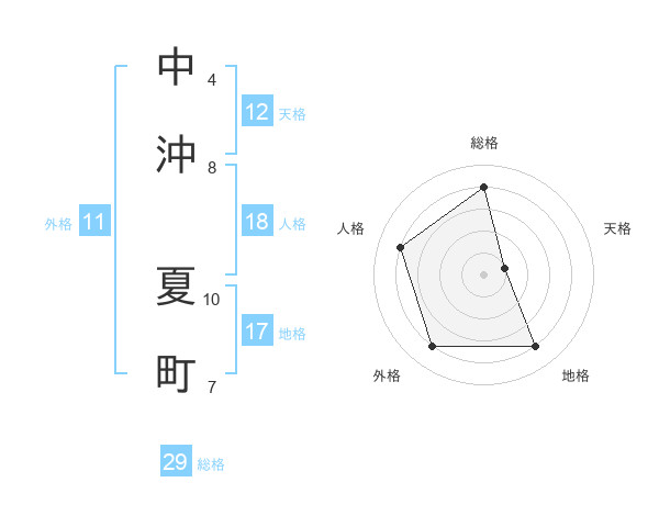 中沖 夏町さんの総格は29画の4点!