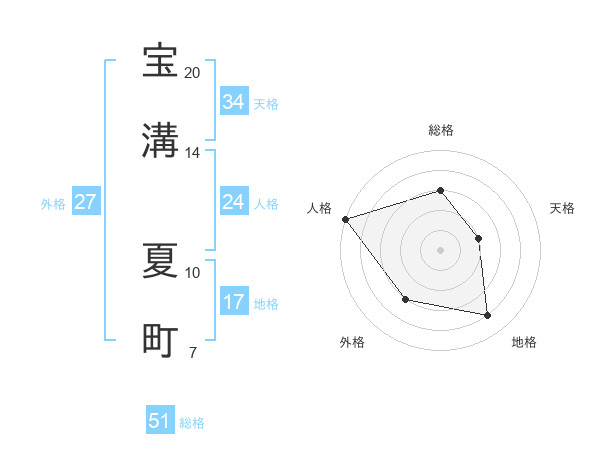 宝溝 夏町さんを姓名の画数から五運を鑑定