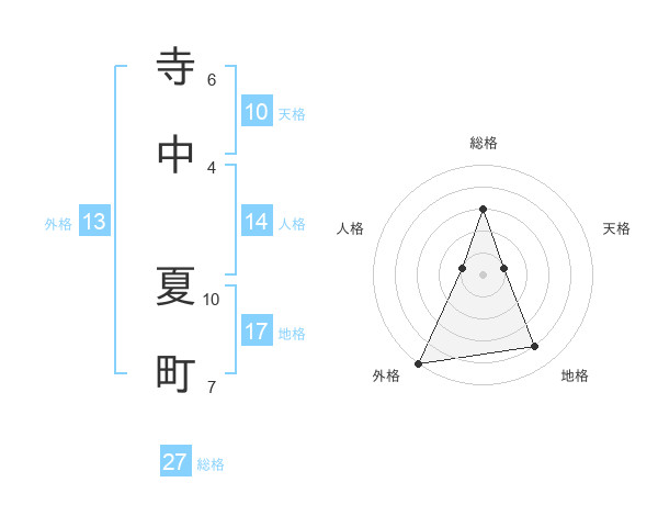 寺中 夏町さんの総格は27画の3点!
