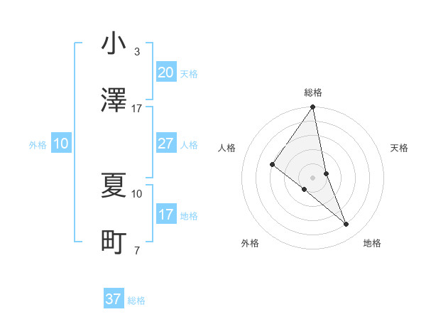 小澤 夏町さんの総格は37画の5点!