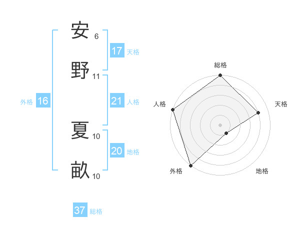 安野 夏畝さんを姓名の画数から五運を鑑定