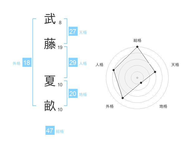 武藤 夏畝さんの総格は47画の5点!