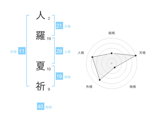 人羅 夏祈さんの天格は21画の5点!