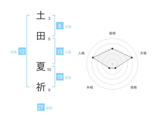 土田 夏祈さんを姓名の画数から五運を鑑定
