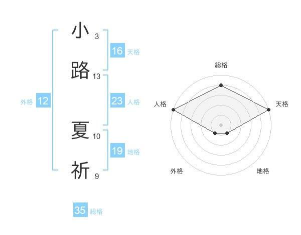 小路 夏祈さんを姓名の画数から五運を鑑定