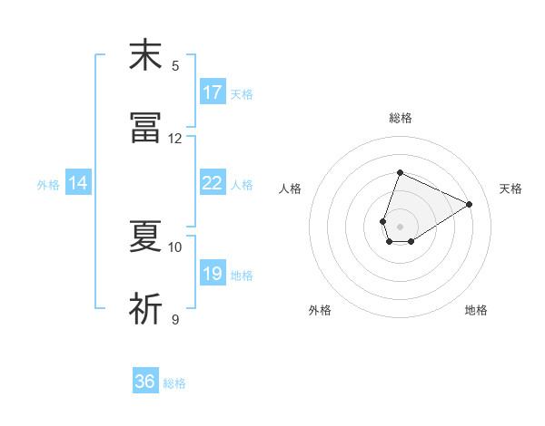 末冨 夏祈さんの天格は17画の4点!