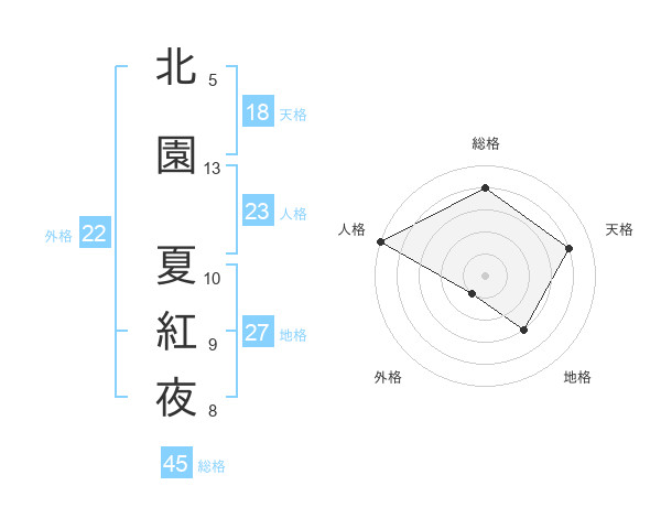 北園 夏紅夜さんの総格は45画の4点!
