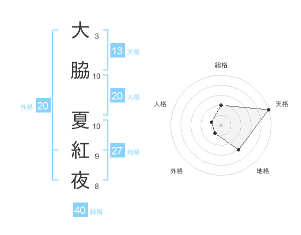 大脇 夏紅夜さんを姓名の画数から五運を鑑定
