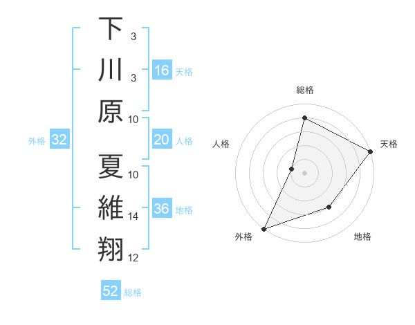 下川原 夏維翔さんの天格は16画の5点!