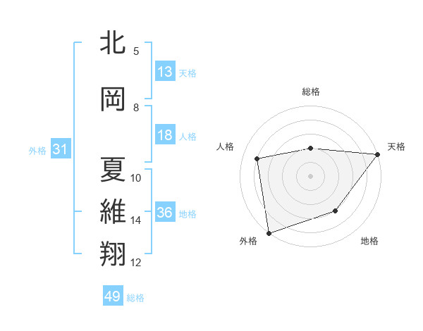 北岡 夏維翔さんを姓名の画数から五運を鑑定