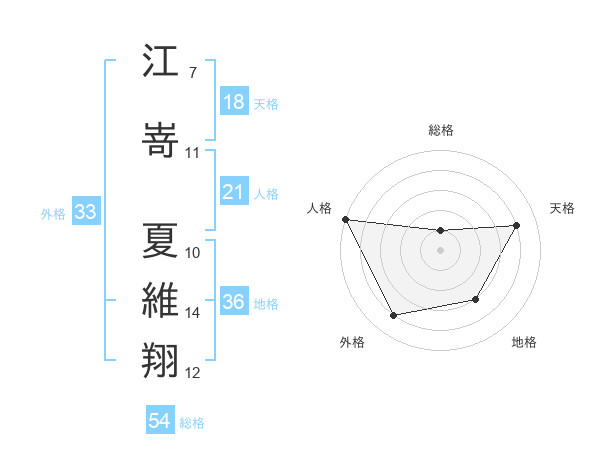 江嵜 夏維翔さんの天格は18画の4点!