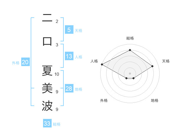 二口 夏美波さんの天格は5画の4点!