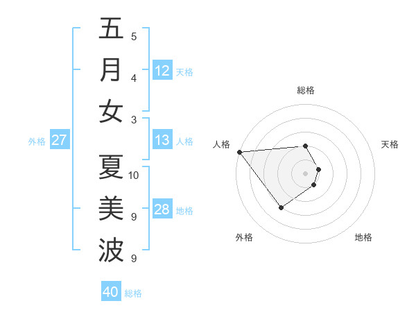 五月女 夏美波さんの総格は40画の2点!