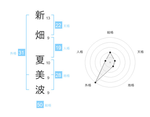 新畑 夏美波さんの外格は31画の5点!