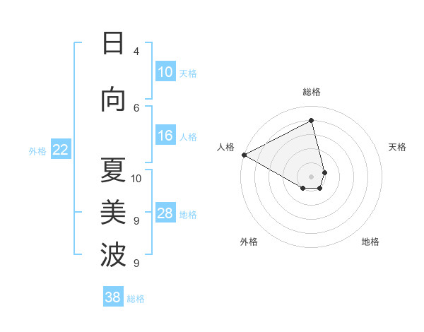日向 夏美波さんの総格は38画の4点!