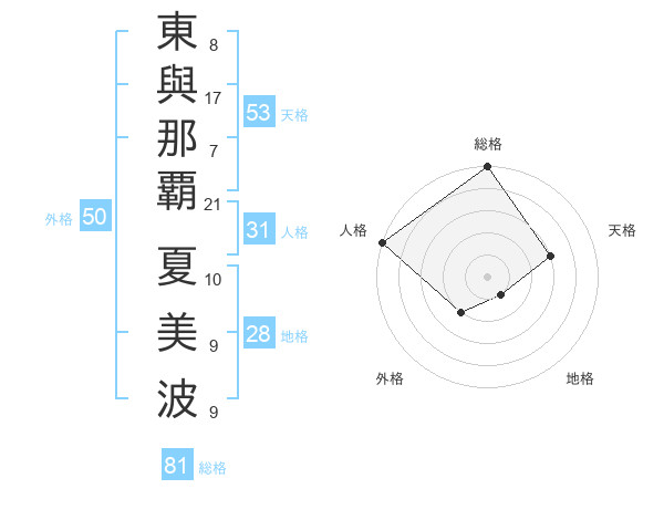 東與那覇 夏美波さんを姓名の画数から五運を鑑定