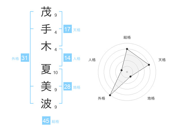 茂手木 夏美波さんを姓名の画数から五運を鑑定