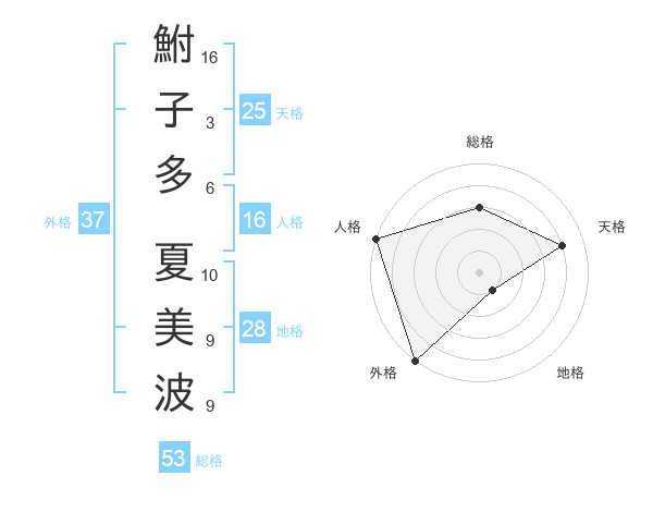 鮒子多 夏美波さんを姓名の画数から五運を鑑定