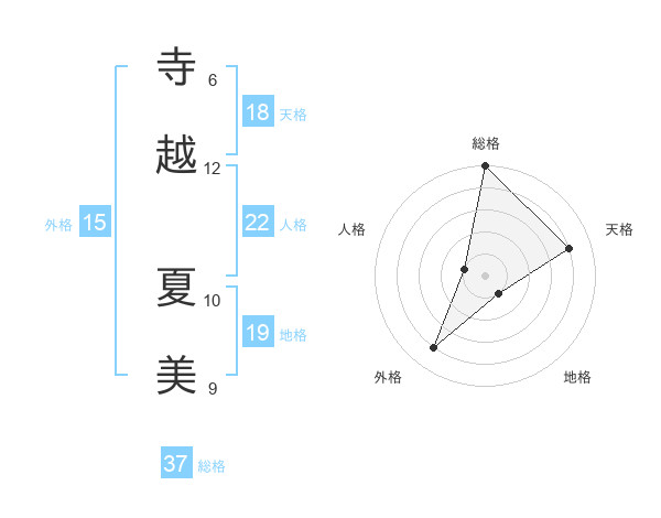 寺越 夏美さんを姓名の画数から五運を鑑定