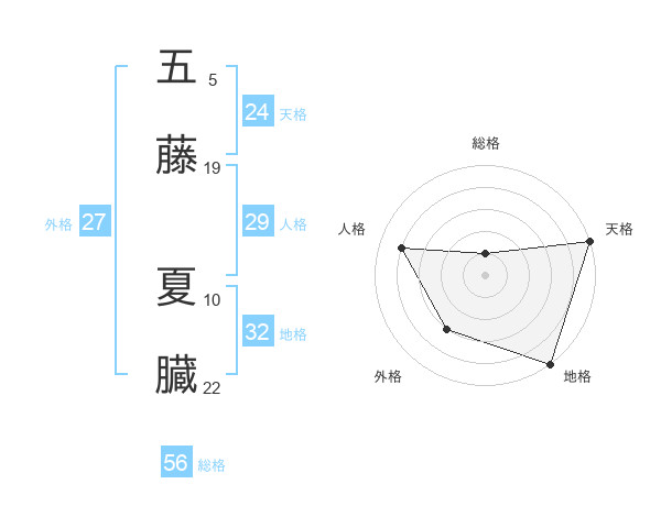 五藤 夏臓さんを姓名の画数から五運を鑑定