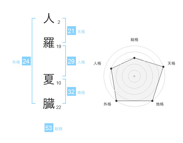 人羅 夏臓さんを姓名の画数から五運を鑑定