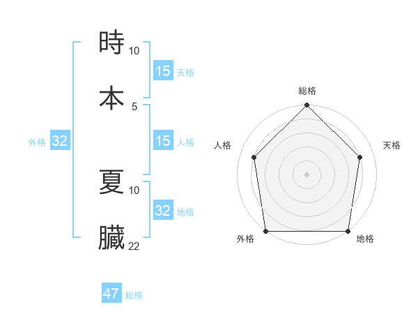 時本 夏臓さんを姓名の画数から五運を鑑定