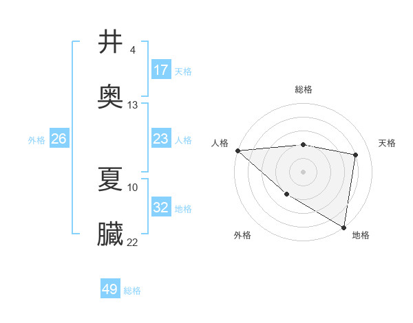 井奥 夏臓さんの天格は17画の4点!