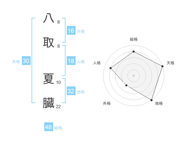 八取 夏臓さんの総格は48画の4点!
