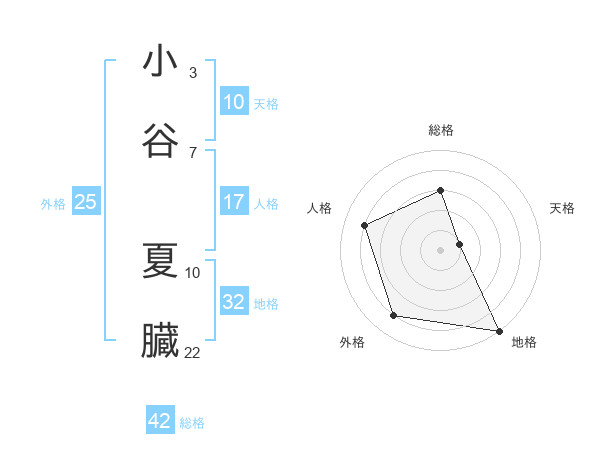 小谷 夏臓さんを姓名の画数から五運を鑑定