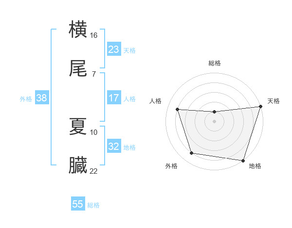 横尾 夏臓さんを姓名の画数から五運を鑑定