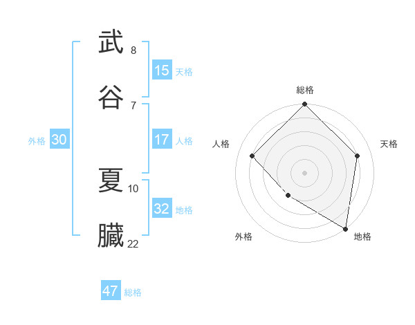 武谷 夏臓さんの総格は47画の5点!