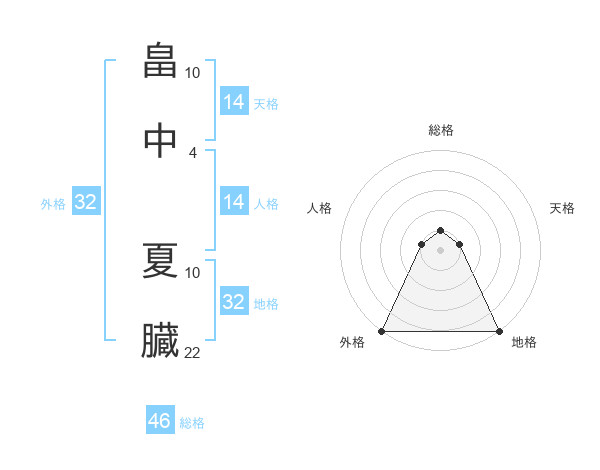 畠中 夏臓さんを姓名の画数から五運を鑑定