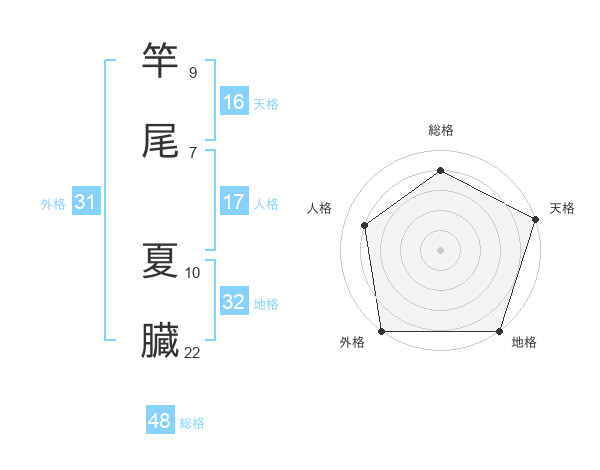 竿尾 夏臓さんを姓名の画数から五運を鑑定