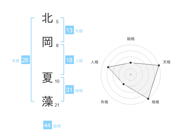 北岡 夏藻さんを姓名の画数から五運を鑑定