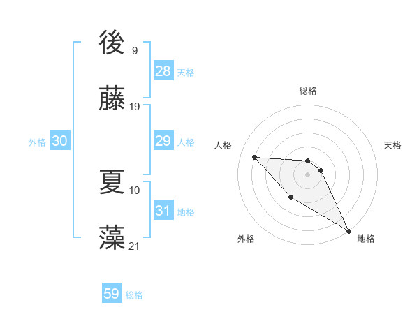 後藤 夏藻さんを姓名の画数から五運を鑑定