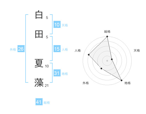 白田 夏藻さんを姓名の画数から五運を鑑定