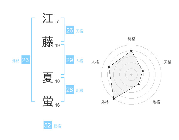 江藤 夏蛍さんの総格は52画の4点!