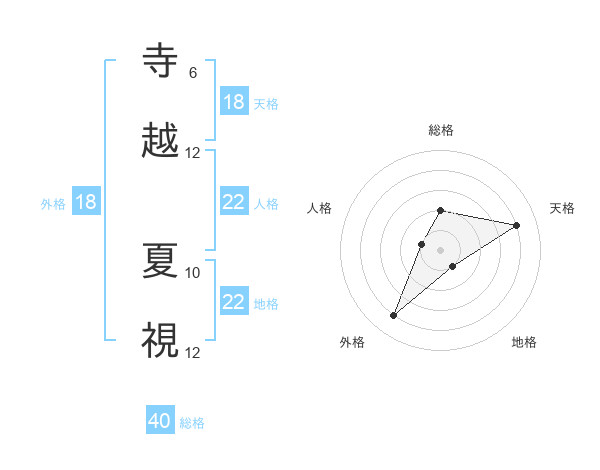 寺越 夏視さんの総格は40画の2点!