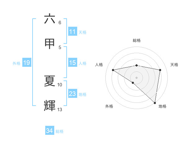六甲 夏輝さんを姓名の画数から五運を鑑定