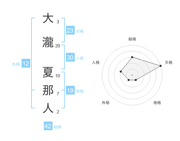 大瀧 夏那人さんを姓名の画数から五運を鑑定