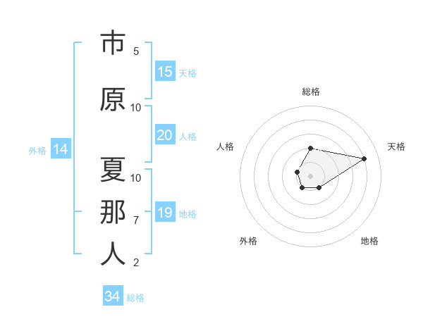市原 夏那人さんの天格は15画の4点!