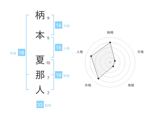 柄本 夏那人さんを姓名の画数から五運を鑑定