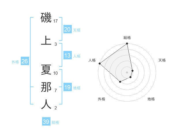 磯上 夏那人さんの天格は20画の1点!