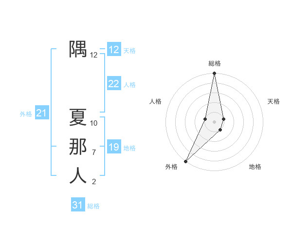 隅 夏那人さんの外格は21画の5点!