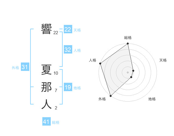 響 夏那人さんの外格は31画の5点!