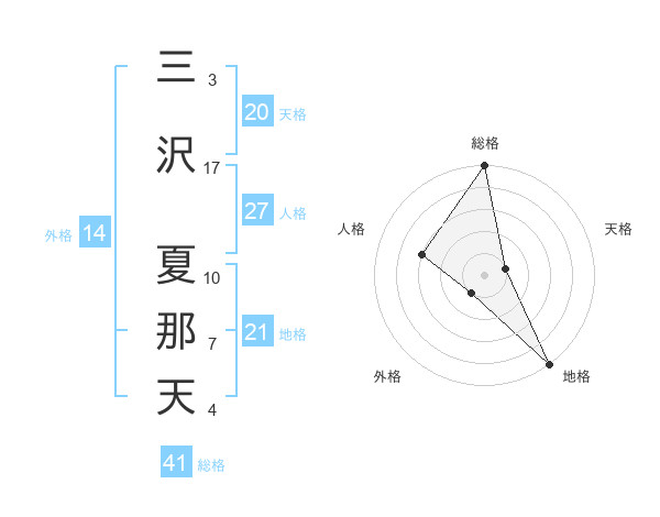 三沢 夏那天さんを姓名の画数から五運を鑑定