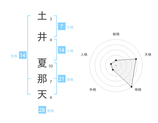 土井 夏那天さんを姓名の画数から五運を鑑定