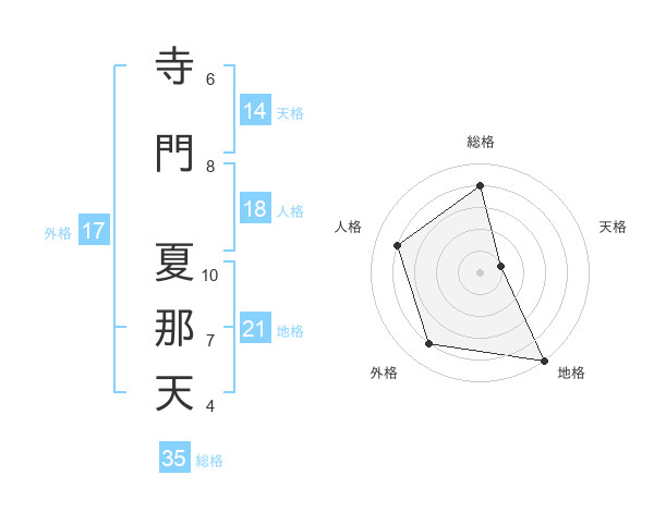 寺門 夏那天さんの外格は17画の4点!