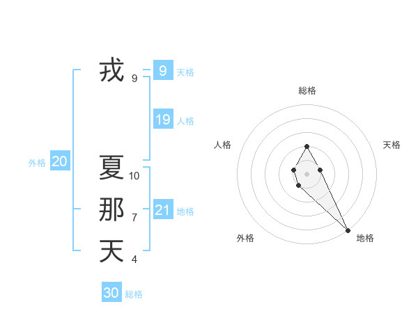 戎 夏那天さんを姓名の画数から五運を鑑定